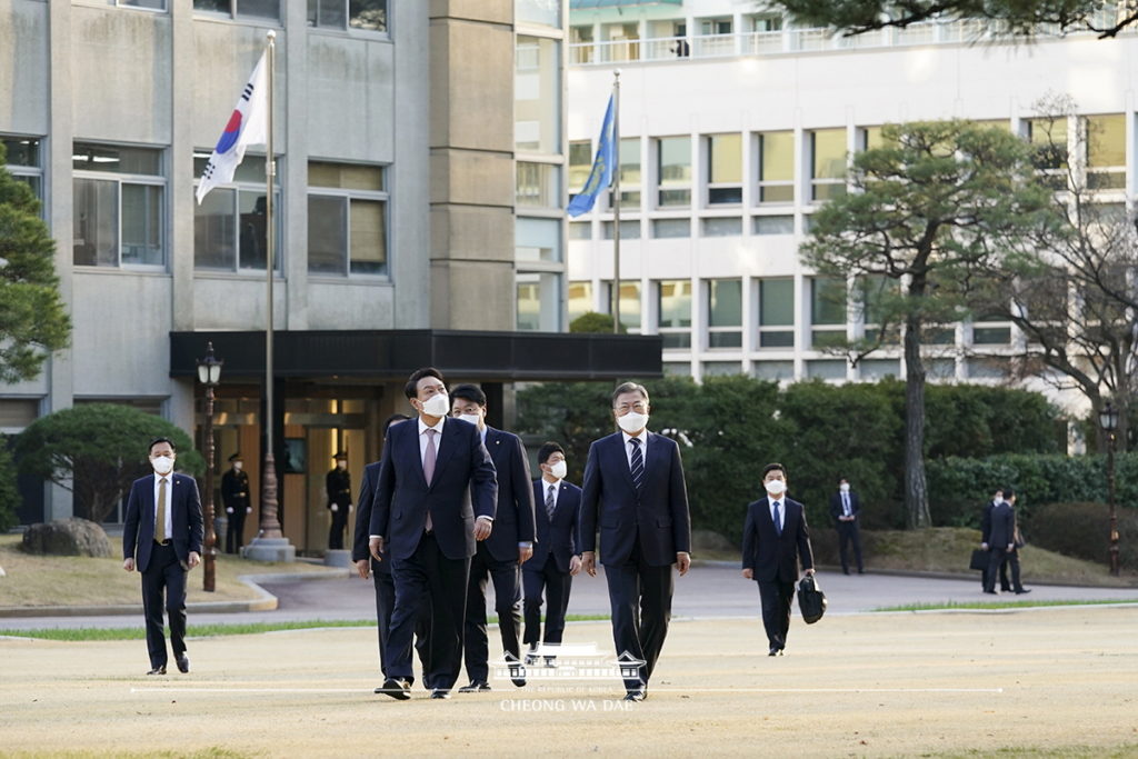 image: Cheong Wa Dae)</figcaption>Moon and Yoon met for dinner at the Blue House after two weeks’ strife but there was little substance from Yoon’s chief of staff Jang Je-won’s briefing.